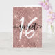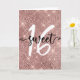 Cartão de aniversário moderno de 16 anos, moderno, com roteiro caligráfico doce e número 16 em fundo rosa dourado. Clique em personalizar ainda mais para adicionar o dentro de mensagem.