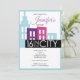 Este convite do tema da cidade é certo excitar seu convidado. Jogo colorido em palavras com os gráficos da skyline da cidade. Convite perfeito para um partido popular da forma e dos amigos.