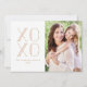 Compartilhe sua foto favorita com a família e os amigos, enviando-lhes nosso cartão com fotos de Dia de os namorados doce e simples. A placa de Dia de os namorados moderna apresenta "XOXO" em na moda pincel rosa e tipografia dourada e espaços reservados para sua foto personalizada e texto personalizado. O verso da placa apresenta um design de cor-de-rosa pincel e ouro.