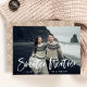 Celebre a temporada de festas com amigos e familiares enviando-lhes nosso cartão com fotos quente e aconchegante de Natal do Sweater. O cartão de feriado apresenta a sua foto favorita com o "Sweater Weather" em uma camada branca de fontes de script com letra manuscrita. Personalize a frente da placa adicionando uma saudação personalizada e o nome da sua família. O verso da placa apresenta um padrão de suéter branco e bege nórdico floco de neve.