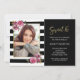 Este doce listrado preto e branco convite de 16 aniversários igualmente caracteriza alguns arranjos florais coloridos framboesa da aguarela. O título está em um revestimento da folha de ouro do falso. A foto aparece no lado de mão esquerda do design em um quadro da beira da folha de ouro do falso. Mais design neste esquema de cores está disponível na loja. O doce listrado e floral deste branco traseiro convite de 16 aniversários está pronto para ser personalizado.