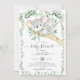 Um chá de fraldas bonito, com gêmeos Koala, um doce bebê, com a mãe enquadrada por folhas de eucalipto. Sacudir nosso convite para ver uma folha de eucalipto correspondente para um toque especial extra.