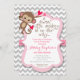 Um macaquinho doce está a caminho e você precisa convidar sua família e amigos para celebrar um dia especial! Este convite apresenta um macaco giro com sotaques cor-de-rosa e um fundo de chevron.