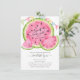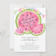 Chá de fraldas de aquarela cúbica com uma fatia de melancia com bandeira de revestimento de cor pastel com uma melancia correspondente para um toque especial extra. Visite o nosso compro para ver este convite para um bebê e um chá neutro em termos de gênero.