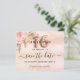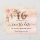 Uma garota e moda Salve o cartão de data para uma doce festa de aniversário 16, 16. Um fundo cor-de-rosa pincelado, rosa de gradiente dourado decorado com florais cor-de-rosa pincelado e grama pampas. Personalize e adicione uma data e nome/idade. O texto: Salvar a Data é gravado com um script de estilo com letra de tendência grande. O número 16 é escrito com um script de estilo de balão.
