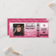 Convites de tíquete de 16 festas, Tíquete Rosa-Quente e Branco, personalize com sua foto colorida e informações de festas. Faz um excelente, um convite de ingresso único para a aniversariante, ou qualquer ocasião! Design de bilhetes falsos com código de barras, ano, admita um e informações sobre a festa.