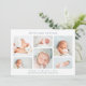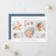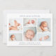 Um cartão de anúncio de nascimento elegante e moderno, com seis fotos de recém-nascidos organizadas em uma colagem. O nome do seu bebê aparece por cima, com as estatísticas de natalidade e a mensagem da família por baixo. Um belo cartão com fotos de anúncio de nascimento neutro em termos de gênero em várias cores para anunciar a sua chegada.