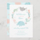 Este convite de aniversário temido para o animal marinho apresenta uma baleia, tubarão-tigre, geleia, tartaruga marinha e cavalo-marinho, nadando em círculo com fundo aqua macio.