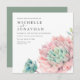 Um elegante convite de casamento quadrado com aquarela rosa e suculentos verdes. Se você precisar de alterações no design, como cor, texto ou fonte; entre em contato conosco em seamistmail@gmail.com. Adoramos fazer parte de suas memórias felizes.
