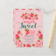 Doce Um Morango Rosa Convite de 1º Aniversário Cartão Postal.
