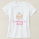 Compartilhe as notícias do seu bebê da maneira divertida com uma adorável t-shirt do anúncio da maternidade em julho. Design de gravidez colorida para a mãe ficar com um bebê de julho a caminho.