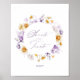 Adicione um toque encantador ao seu chá de fraldas com este poster de doces e tratamentos! Apresentando uma delicada coroa floral em tons suaves de lavanda, creme e amarelo, esta elegante placa complementa lindamente a sua mesa de sobremesa. Perfeito para guiar convidados a uma seleção encantadora de doces e, ao mesmo tempo, melhorar a decoração geral de sua celebração.