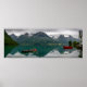 Poster de impressão de paisagem com dois velhos barcos a remos num lago com reflexo das montanhas no Hotel Hjelle, Hjelle, Stryn, Sogn og Fjordane, Noruega. É uma foto panorâmica, perfeita para decorar sua parede.