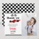Um cartões de agradecimentos giro para a comemoração de aniversário do seu filho! Um carro vermelho, uma bandeira de corridas de carros e chamas são apresentados no Tema dos Dois Automóveis de Corrida Rápida Rápida. PERSONALIZE facilmente este design com suas informações! Cimi Se você precisar de ITENS CORRESPONDENTES, consulte nossa coleção correspondente na minha loja.
