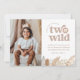 Este cartões de agradecimentos de aniversário apresenta um rosto de leão de aquarela doce com a frase "obrigado você por ser dois selvagens comigo", acentuado por folhas de selva de tons neutros ao longo do fundo. Você pode adicionar sua própria foto do aniversariante ou da garota também. Perfeito por agradecer aos seus convidados por terem vindo à sua comemoração de segundo aniversário com o tema safari!