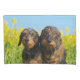 Dois adoráveis cachorros-dachshund com cabelos de javalis selvagens, lado a lado, em frente às flores amarelas de colza floridas. Foto engraçada e engraçada de Katho Menden. Este caso de travesseiro acolhedor é uma ideia de presente para amantes de cães. http://www.zazzle.com/kathom_photo Se você está vendo um design que não está disponível no seu produto desejado, por favor não hesite em me contactar através do meu compro e eu criarei o produto o mais rapidamente possível.