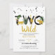 Diversão do convite de aniversário de safari moderno com palmeiras e animais dourados.