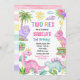 Convite de aniversário do dinossauro / Tworex / dois / rex / dino / selvagem / selva / tropical / roxa / rosa / teia