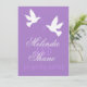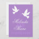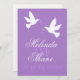 Simples e duplo, duas pombas de amor branco com fitas roxas, convite para casamento. Projetado para um casamento formal hospedado pelo casal para casar. Personalizar com seus próprios detalhes contém detalhes de RSVP. Foi projetado para funcionar com o RSVP, veja abaixo.