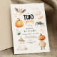 Celebre o seu segundo aniversário com um toque de charme assustador! Este adorável convite de aniversário do tema "Ele é dois assustadores" apresenta uma série encantadora de personagens bonitinhos do Halloween, incluindo fantasmas amigáveis, um morcego fofo, abóboras e aranhas. As cores macio e as ilustrações brancas dão um tom festivo, mas gentil, perfeito para a primeira comemoração de aniversário.