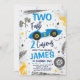 Dois Rápidos 2 Curiosos convites para segundos aniversários Azul Dois rápidos 2 curiosos! Comece seus motores! Personalize este belo convite com as suas próprias informações!