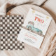 Eleve a sua próxima celebração de aniversário com o nosso cartão de aniversário "DOIS FAST". Apresentando um charmoso carro retro azul pastel com uma bandeira à direita e uma fonte vermelha divertida "Duas Rápidas", este convite define o tom perfeito para uma celebração excitante e nostálgica. Personalizável com seus detalhes de eventos, promete tornar seu dia especial ainda mais memorável.