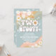 Celebre o dia especial dos seus pequenos com este convite de aniversário "Two Groovy" inspirado no estilo retrô! Com listras onduladas pastéis, margaridas, borboletas, sinais de paz e uma fonte divertida no estilo dos anos 70, este design define o clima perfeito para uma festa divertida e colorida. Ideal para aniversários de crianças pequenas, este convite personalizável facilita o compartilhamento dos detalhes do evento enquanto cria uma atmosfera alegre e boho. Os convidados vão adorar a mistura caprichosa de paz, amor e charme groovy que torna este convite inesquecível.