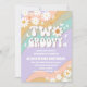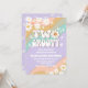 Celebre o dia especial do seu pequeno com este convite de aniversário "Two Groovy" inspirado no estilo retrô! Com listras onduladas coloridas, margaridas alegres, sinais de paz, corações e estrelas, este design divertido captura o espírito divertido dos anos 70. Perfeito para uma festa de segundo aniversário, este convite personalizável define o tom para uma celebração vibrante repleta de paz, amor e alegria. Personalize com o nome da criança, detalhes da festa e informações de RSVP para criar um souvenir único que os convidados adorarão.