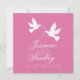 Uma pomba branca simples e dupla, com duas fitas cor-de-rosa, convite para casamento. Projetado para um casamento formal hospedado pelo casal para casar. Personalizar com seus próprios detalhes contém detalhes de RSVP.