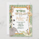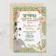 Que fofo! Este "Safari Dois Selvagens Animais Selvagens" apresenta um convite temático: macaco, girafa, leão, elefante, jacaré, papagaio, tigre e uma zebra fofa com uma armação de bambu contra um fundo de impressão leopardo. Sexo neutro com um paladar moderno e neutro, então é excelente para um menino ou menina!