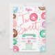 Este é um convite para dois segundos aniversários doces com um tema de rosquinha e aspersores. A design é constituída por rosquinhas com glacés de chocolate azul, rosa, roxo, verde e castanho e aspersores. Fez um segundo aniversário!