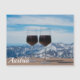 Dois copos de vinho tinto contra o fundo da montanha. Vista dos picos de neve nas montanhas...