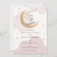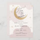 Convite de aniversário com nuvens cor-de-água rosa e estrelas douradas com lua reluzente e roteiro divertido "Duas da Lua!" Personalize com suas informações ou clique em "clique para personalizar mais" para ajustar o tipo de fonte, o tamanho e a cor.
