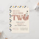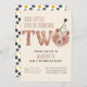 Celebre seu filhote fazendo dois anos com este adorável convite de aniversário de "Duas e Duas Vezes como Bonitas"! Apresentando um ursinho de peluche aquoso em um chapéu de bolinhas e uma tipografia divertida, esta design é perfeita para uma comemoração inspirada no urso ou na floresta. Personalize com o nome do seu filho, os detalhes de aniversário e as informações de RSVP para criar um convite de festas doce e personalizado.