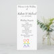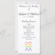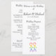Este cartão de programa apresenta um design bonito e elegante para sua cerimônia de casamento ou recepção. O gráfico no topo mostra dois homens, na forma de figuras elegantes de palitos, de mãos dadas. Os números são coloridos num belo arco-íris, simbolizando amor e diversidade. Este cartão é uma maneira maravilhosa de trazer um toque coeso e significativo ao seu casamento, compartilhando a ordem dos eventos e apresentando sua festa de casamento aos seus convidados.