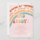 Retro inspirou dois convites para o segundo aniversário com estilo hippie arco-íris.