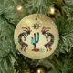 Personalize este Enfeites de natal "Um dos tipos" do sudoeste de Kokopelli! Ele apresenta dois Kokopelli sudoeste em Turquoise, laranja e preto tocando flauta e dançando ao redor de um cacto...Sob o Sol em um Dourado Fundo! Design De Arte Original Pelo Artista Kerry Miller.