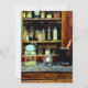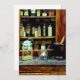 Morteiro e caldeiras podem ser vistos numa farmácia porque o farmacêutico usou o caldo para moer fármacos em pó na argamassa para fazer medicamentos.