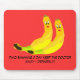Dois personagens de desenho animados de banana fofinhos, desenhados digitalmente, com a palavra "Duas bananas por dia mantenham o médico longe - definitivamente!". A cor do fundo pode ser facilmente personalizada, bem como a redação.
