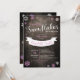 Design apresenta o texto "Dois pequenos flocos de neve estão a caminho" junto com flocos de neve rosas e brancos sobre um fundo de madeira rústico. A design é perfeita para um chá de fraldas de menina gêmea no inverno. O texto pode ser personalizável para ajustado das informações que você precisa colocar no cartão de convite.