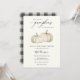 Convite para chá de fraldas temático da abóbora. Design apresenta duas bombas brancas e douradas para um chá duplo. Personalize com suas informações ou clique em "Clique para personalizar mais" para editar estilos de fonte, tamanho e cores.