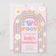 Design é para um Segundo Aniversário! Apresenta um arco-íris retrô, tipografia divertida e flores. Um convite doce e colorido para a sua comemoração de segundo aniversário! Personalize o texto editável.