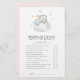 Este jogo de "mamãe ou pai", uma menina elefante dormindo, é perfeito para um chá de fraldas simples. O design moderno apresenta um animal de safari, moderno e agudo, que dorme numa nuvem macia com estrelas amarelas cintilantes. Você pode personalizar as perguntas do jogo clicando no botão "personalizar".