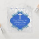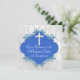 Os CONVITES da CONFIRMAÇÃO do MENINO bonito SÃO ADORÁVEIS com uma CRUZ SANTAMENTE ELEGANTE… DESIGN BRANCO ORIGINAL E ELEGANTE DO DAMASCO. O FUNDO AZUL REPRESENTA PARA FORA ESTE gráfico RELIGIOSO de INVITAITON por delightfuldoodles