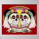 Duas noivas felizes do crânio de açúcar com uma faixa abaixo que diz "O Verdadeiro Amor é para Sempre". A cor de fundo pode ser alterada para personalizar. O gráfico também pode ser redimensionado para que você possa adicionar texto e personalizar.