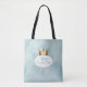 Besteira de tote de concurso de beleza propósito feita em um olhar azul-turquesa. Uma área branca de texto oval, na frente da bolsa, tem gráficos de diamantes falsos como uma armação e uma coroa dourada, em cima. Personalize o texto para atender às suas necessidades.