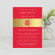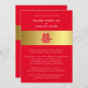 Especialmente projetado para um casamento chinês, este cartão apresenta o símbolo de "Felicidade Dupla". O termo "Dupla Felicidade" escrito xi ou "hsi" em mandarim e pronunciado "shuang-xi" é um conhecido personagem chinês usado tradicionalmente nos casamentos chineses como símbolo de amor, felicidade e sorte para o recém-casado casal. O uso da cor vermelha é auspicioso, assim como uma cor popular na cultura chinesa, simboliza sorte, felicidade e alegria. Enquanto a banda dourada simboliza riqueza e prosperidade. A parte traseira da placa também apresenta uma banda dourada, incluindo as iniciais do casal dobrado.
