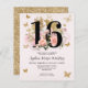 Floral Blush Dourado Borboleta Rosa Brilhante Doce 16 Convite de Aniversário