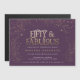 Dourado efeito de brilho roxo 50 e convite de aniversário fabuloso. Texto de script moderno monocromático design. Parte de uma coleção.
