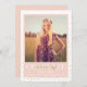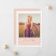 Camadas de confete ouro modernas atrás de um bloco de cores escamoteado que enquadra a foto do formando e detalhes sobre este divertido, chique e sofisticado anúncio de graduação.